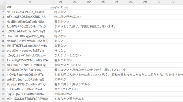 次からは実際の調査データを使い、上記に挙げた自由回答の要約をAIにお願いをしたらどうなるのかを検証いたしました。