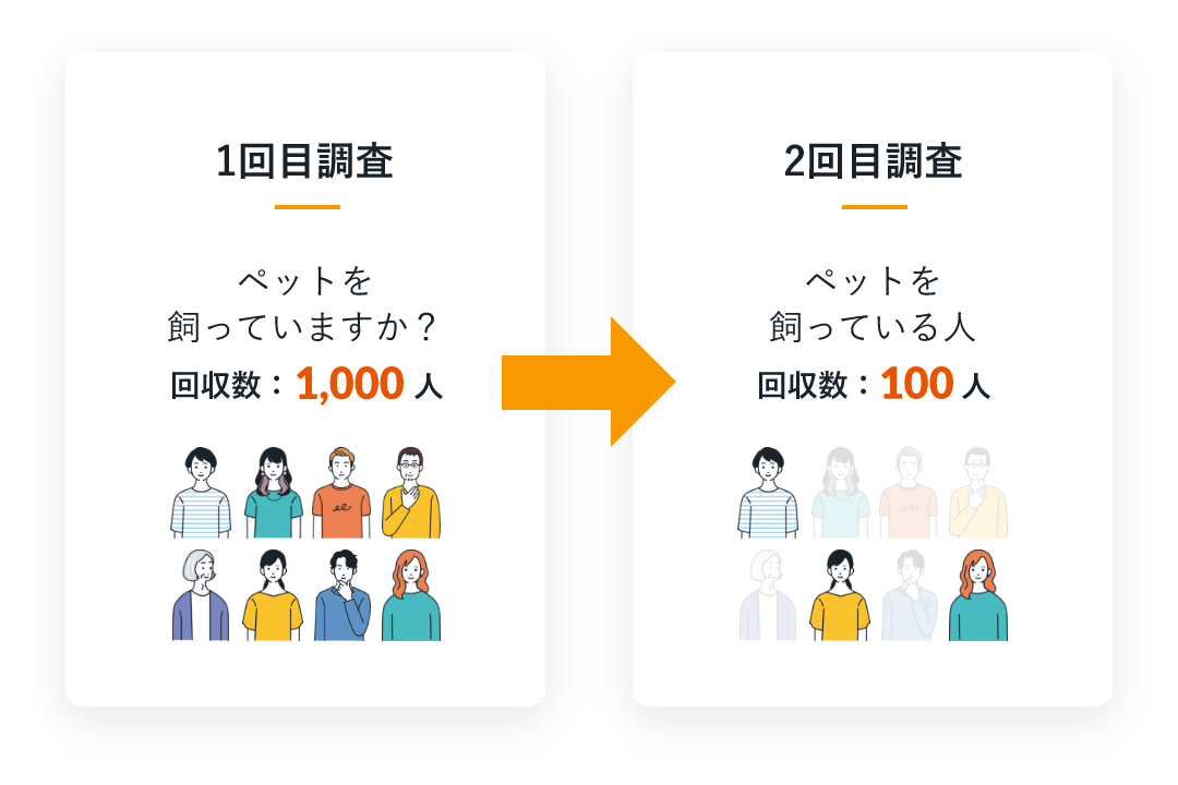 「ペットを飼っている人」などの本調査対象者を絞り込み